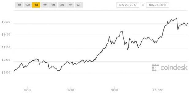 Dünyanın önde gelen kriptokrasitesinin yani sanal para veya diğer adı bitcoin’in değeri giderek artıyor. 26 Kasım 2006 saat 06:40 itibari ile değeri 9.000 Doları geçtikten sonra; bugün itibariyle 9.600 Doları gördü.