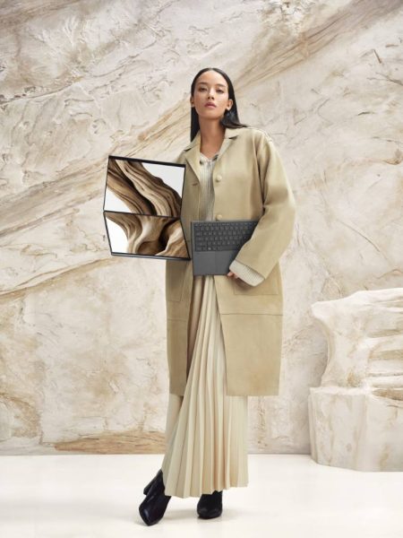 Önceki nesle göre %5 daha küçük bir kasaya sahip olan cihaz, seyahat halindeki profesyonellerin tüm ihtiyaçlarına yanıt veriyor. Yeniden tasarlanan entegre kickstand (destek ayağı) ve gizli menteşe yapısı, tüm kullanım modlarında sarsılmaz bir denge sunuyor. Cihazın güçlendirilmiş Bluetooth® klavyesi, yeni MagLatch™ yerleştirme sistemi ve geri çekilebilir pogo pinleri sayesinde iki OLED panel arasına zahmetsizce ve güvenle yerleşiyor.