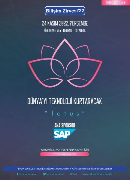 Bireylerin, şirketlerin ve ülkelerin olmazsa olmazı haline gelen teknoloji ve bilişimin vizyon, strateji ve yol haritasının belirlenmesi, güncellenmesi, geliştirilmesi için çözüm yollarının konuşulacağı Bilişim Zirvesi’22, 24 Kasım Çarşamba günü Zeytinburnu Fişekhane’de gerçekleştirilecek. Çamurda açan sonsuz yaşamın simgesi “lotus” çiçeğinden yola çıkılarak; teknoloji uğruna kirlettiğimiz doğanın ancak teknoloji ile temizlenebileceği, doğru ve akıllı kullanımla doğal felaketler de dâhil olmak üzere pek çok sorunu yine teknolojinin çözeceğinden yola çıkarak “Dünya’yı Teknoloji Kurtaracak” temasıyla düzenlenen zirve, bu sene fiziksel ortamda www.BZetkinlik.com adresinden yapılan online kayıt ile herkesin bedelsiz katılımına açık yapılacak.