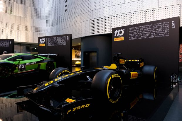 Müzede, Prens Scipione’nin Itala’sından, kısa süre sonra 2017 dünya şampiyonasının ilk ayağı Avustralya Grand Prix’sinde ilk kez boy gösterecek olan yeni geniş F1 lastiklerine kadar, Pirelli’nin 110 yıllık geçmişi sergileniyor. Bu değerli hazine Pirelli’nin iki ve dört tekerlekli taşıt lastik mirasını barındırıyor. Ayrıca, motor sporlarının lastiklerle hiç olmadığı kadar ilişkilendirildiği günümüze, geçmişten ışık tutuyor. Porsche 911S Turbo yol otomobili ve Lamborghini Huracan GTS yarış otomobili için ürettiği P Zero lastiği ürünün yol ve pist lastiği versiyonlarının birbirine ne kadar yakın özellikler taşıdığını gösteriyor.