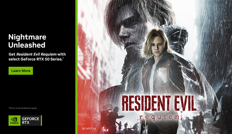 Ek olarak, Resident Evil Requiem GeForce RTX 50 Serisi Kampanyası şu an satışta. Bu paketin bir parçası olarak oyuncular; kampanyaya dahil olan perakendecilerden ve e-ticaret sitelerinden GeForce RTX 5090, 5080, 5070 Ti veya 5070 masaüstü bilgisayar veya ekran kartı ya da GeForce RTX 5090, 5080, 5070 Ti veya 5070 ekran kartına sahip dizüstü bilgisayar satın aldıklarında, Resident Evil Requiem’in bir Steam kopyasına sahip olacaklar.