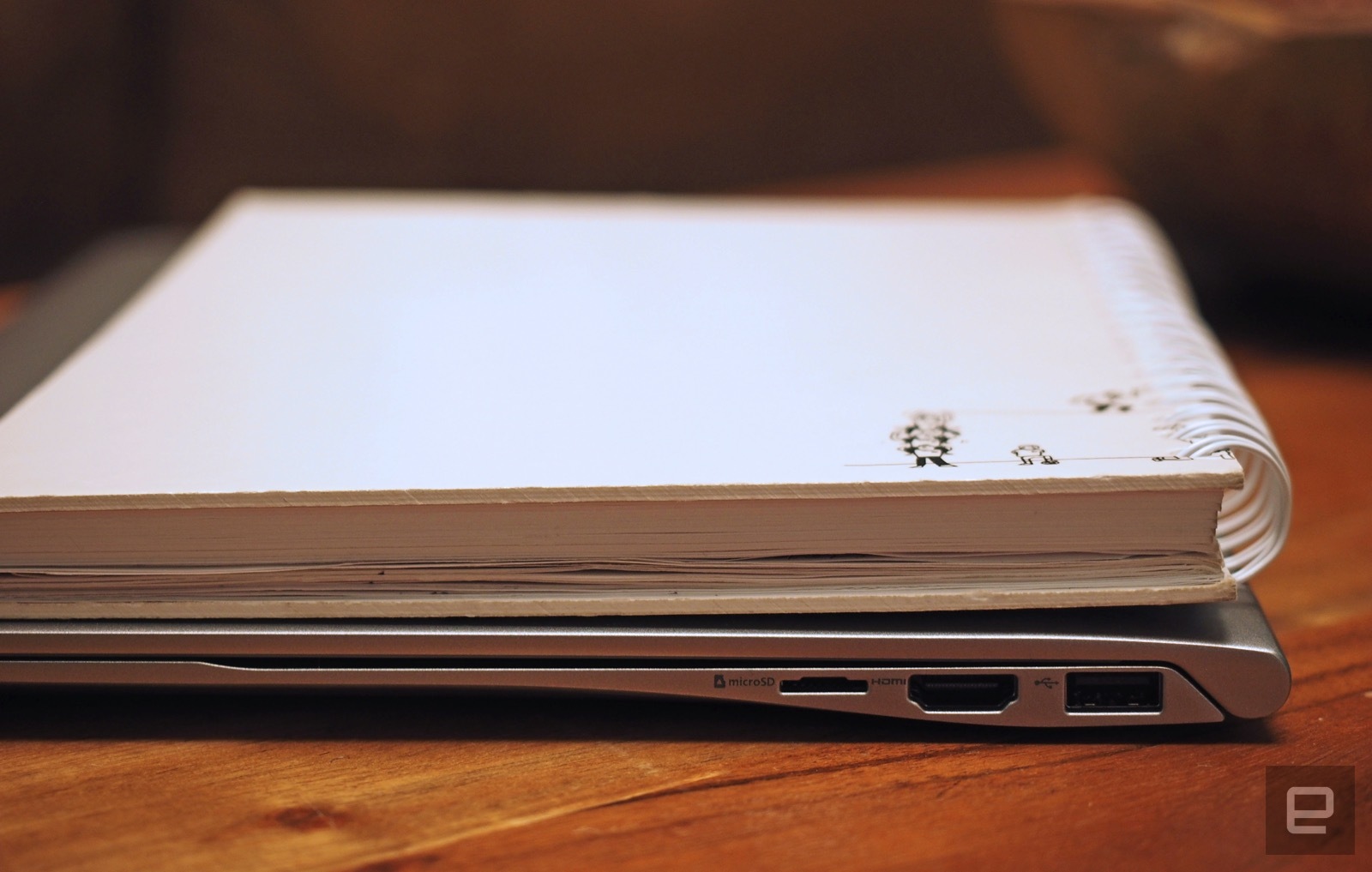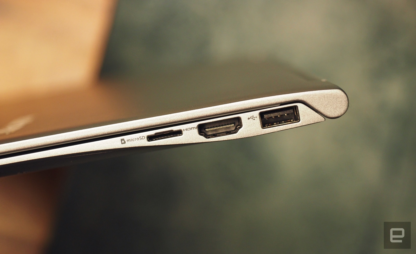 Sadece bu özelliği ile dikkat çekici değil elbet magnezyum alaşımlı bir kasaya sahip fakat plastik gibi görünüyor. çevre donanımlarının yani üzerindeki port ve diğer yuvalar oldukça iyi yerleştirilmiş görünüyor. Sol tarafta Usb girişi, Kulaklık USB Type C portu ve Mini Display portu yer alıyor. Sağ tarafta ise HDMI soketi ve MicroSD kart okuyucu bulacaksınız.
