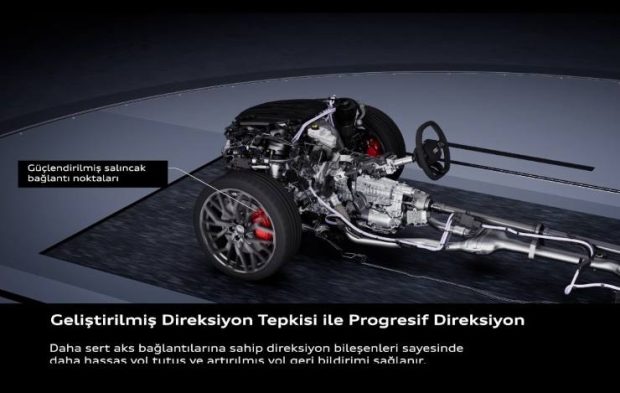 Yeni A6 Avant’ta kullanılan ilerici direksiyon sistemi de geliştirilmiş şasi bileşenleri sayesinde daha doğrudan tepki veriyor. Daha rijit aks bağlantıları, güçlendirilmiş süspansiyon elemanları ve optimize edilmiş direksiyon sistemi sayesinde sürücüye daha net yol geri bildirimi sağlanıyor. Bu da aracın hem daha çevik hem de daha dengeli bir sürüş karakteri sunmasına katkıda bulunuyor.
