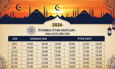 İstanbul için 2026 Ramazan İftar Saatleri — Gün Gün Tam Liste