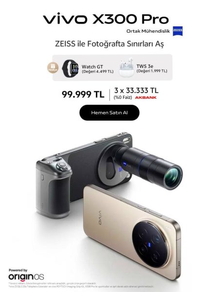 30. yılını kutlayan vivo, kullanıcı odaklı inovasyon ve teknik mükemmeliyet konusundaki kararlılığını ortaya koyan yeni amiral gemisi serisi X300 Pro ve X300 (Pro Mini) modellerini 10 Kasım – 20 Kasım tarihleri arasında Türkiye’de ön satışa sunuyor. Bu dönemde vivo’nun resmi online mağazasından cihaz satın alan kullanıcılar, erken kayıt fırsatlarından yararlanabilecek; ayrıca vivo Watch GT ve TWS 3e kablosuz kulaklık hediyesi kazanacak. Bununla birlikte, şanslı kullanıcılar Telefoto Genişletici Kitini 16.999 TL indirimle satın alma fırsatına sahip olacak.