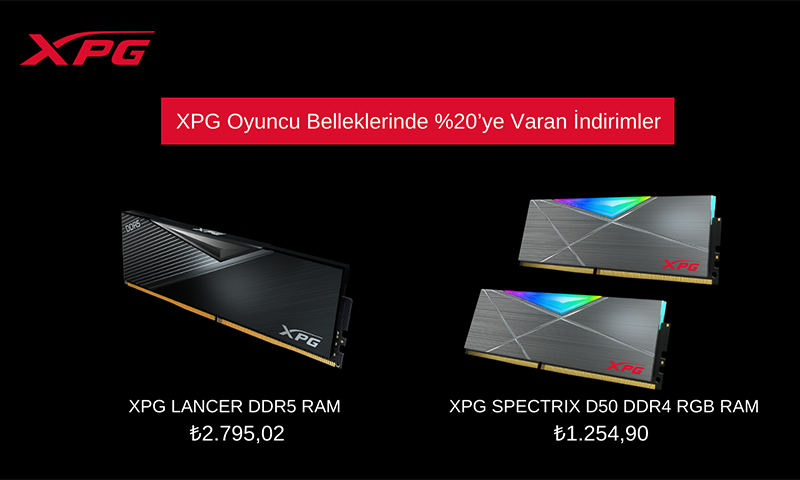 Oyuncular, e-sporcular ve teknoloji meraklıları için hazır sistemler, bileşenler ve çevre birimleri üreten XPG, DDR RAM’lerde Yüzde 20’ye varan indirimlerle kullanıcıları memnun edecek kampanyalar sunmaya devam ediyor.