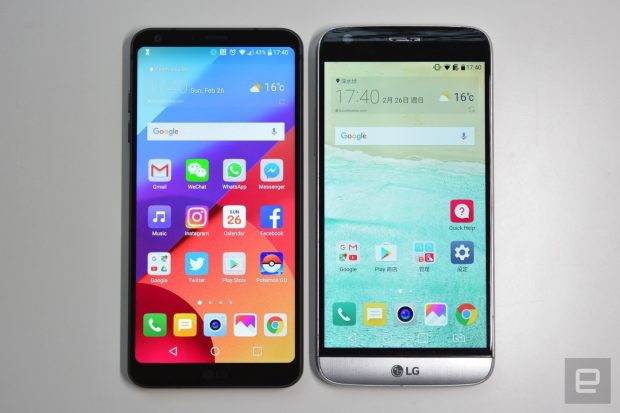Ekran büyüklüğüne rağmen ince çerçevesi sayesinde G5, S7 Edge ve OnePlus 3T’den daha küçük bir gövde boyutu sağlanmış; böylece G6’nın kullanıcının elinde daha rahat bir şekilde oturmasına izin verilmiş.