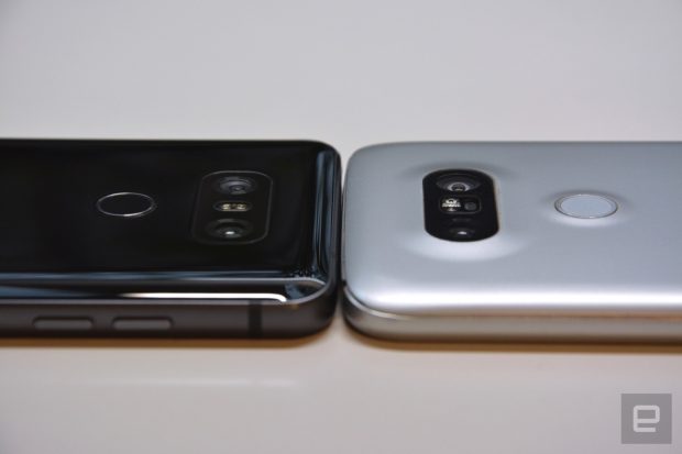 LG ilk bakışda selefinden çok daha düz ve güzel bir tasarıma sahip olduğu açık. Metalik bir sırt Gorilla Glass 5 Ekran koruyucu ve alüminyum çerçeve ve köşeler ise yuvarlatılmış. LG’nin çift kamera ve parmak izi okuyucusu G5’in aksine şimdi arka tarafa yerleştirilmiş.